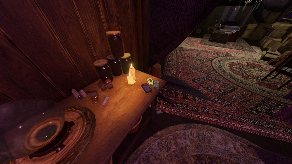 | Tarotkarten Die Tarotkarten erscheinen auf dem Tisch im Dachgeschoss-Schlafzimmer |