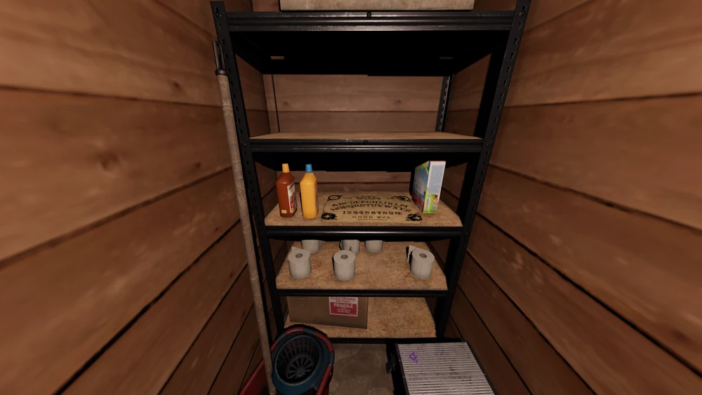 | Ouija-Brett Das Ouija-Brett erscheint auf dem Regal im Putzmittelschrank |